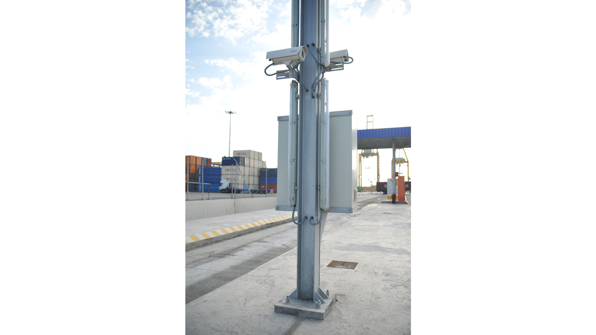 El sistema TMEIC GateCCR permite a los usuarios identificar automáticamente los contenedores ISO durante su transporte en camión a través de un punto de acceso controlado. El sistema incluye también un lector de placas de matrícula de camiones, captura de imágenes estáticas y vídeos para el control de los daños e identificación óptica de etiquetas de mercancías peligrosas con el módulo adicional TMEIC GateIMDG.